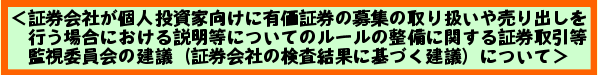 証券取引等監視委員会が行った証券会社に対する検査の結果、証券会社が個人投資家向けに社債を販売する際の営業姿勢に関して問題点が認められたことから、4月22日に同委員会から金融庁長官に対して、金融庁設置法第21条の規定に基づき以下の内容の建議が行われました。