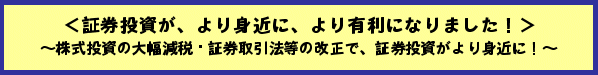 | ・ | 「株式投資にかかる税金が大幅に軽減!さらに身近に!」 | ||||