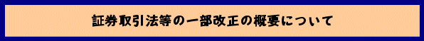 改正法をご覧になりたい方は、金融庁ホームページの「国会提出法案」から「第156回国会における金融庁関連法案」に入り、証券取引法等の一部を改正する法律(平成15年3月14日提出、平成15年5月23日成立)にアクセスしてください。