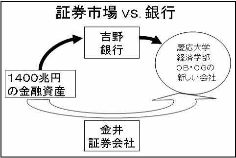 | 3 | .2週間前「金融庁で働いていると当然と考えていることをどう説明するか?」 さて、2週間前になると、準備も佳境に入ります。筆者の経験では、大学で90分の講義を一コマやろうと思うと、完全に予備知識がある場合でも準備にまるまる3日間はかかります。資料を作っていると、「ああ、この講義引き受けなければよかった」と何回か心から後悔しますが、それ以外の時は、知的な楽しい時間です。 この頃一番思い悩むのは、「金融庁で働いていると当然と考えていることを、どう分かりやすく説明するか?」です。今回のテーマ、日本の証券市場について言えば、「直接金融市場が拡大することが何故重要か」、あるいは、「市場型金融システムが何故望ましいか」です。金融庁で一生懸命働いていると、この命題を当然としてスタートし、実現するための施策を必死で考えます。 ところでこの命題、「800人の学生さんに、短時間で、分かりやすく」説明しようとすると、意外に考え込みます。平成14年7月12日の「日本型金融システムと行政の将来ビジョン懇話会(いわゆるビジョン懇)」の報告書は「経済がキャッチアップを終了し、何が資金供給に値するか判然としない段階に至れば、情報の収集、チェックが多数の参加者により行われる市場金融モデルが望ましいと考えられる」と述べていますが、これだけでは、30秒で終わってしまいます。あれこれ考え、金融研究研修センターの仲間ともディベートして、講義での説明用に作ったのが資料2です。 実際の講義では、「君等が新しい会社を興すとき、吉野銀行と金井証券で、どちらが仕事の内容理解してくれると思うかい?そしてファイナンスをどちらに頼む?」と何人かの学生さんを当てました。当然講師としては、上記のビジョン懇の考え方通り、「金井証券」という答えを期待してたのですが、何と全員「吉野銀行」。吉野先生の信頼が絶大なのか、熱弁を奮ったつもりの筆者の説得力がまだまだだったのか・・・。 |