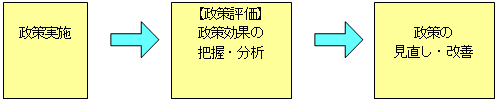 政策評価とは、各府省が自らその政策の効果を把握・分析し、評価を行うことにより、次の企画立案や実施に役立てるものです。