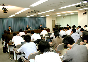 A: 一部、金融商品取引法の対応で、てんやわんやのところもあるという話は聞いております。また、ちょっとこれでは厳しすぎるのではないかというような話を聞くこともございます。しかし、制度がスタートする時には、こういう話は多分いつでもあると思います。ですから、この新しい制度の主旨をご理解いただいて、リスクとかいったことを利用者の皆さんにきちんと説明するという習慣は当たり前のことでありますから、是非、こういう慣行を出来るだけ早く身に付けてもらって、リスクマネーを市場に呼び込む。その流れを加速するということをやっていただきたいと思っております。