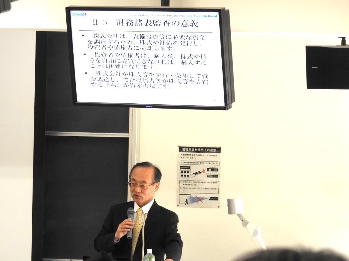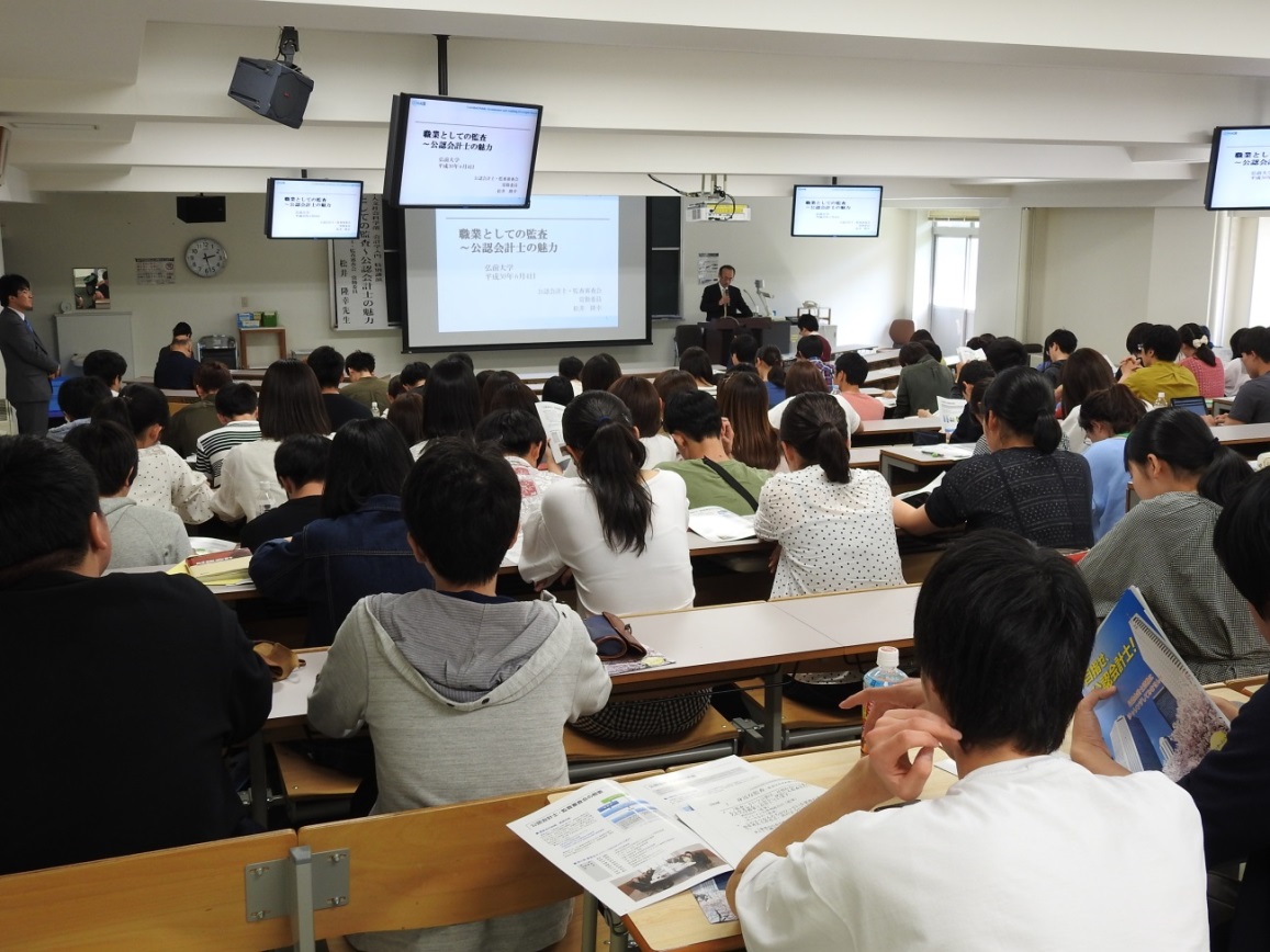 平成30年6月4日、弘前大学において、松井委員が「職業としての監査~公認会計士の魅力」をテーマとして講演を行い、多数の学生の皆さまに御出席いただきました。