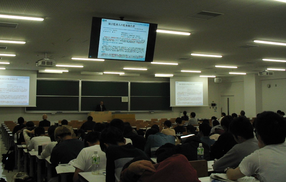 令和元年10月17日、九州大学において、櫻井会長が「経済社会を支える会計と監査」をテーマとして講演を行い、多数の学生の皆さまに御出席いただきました。