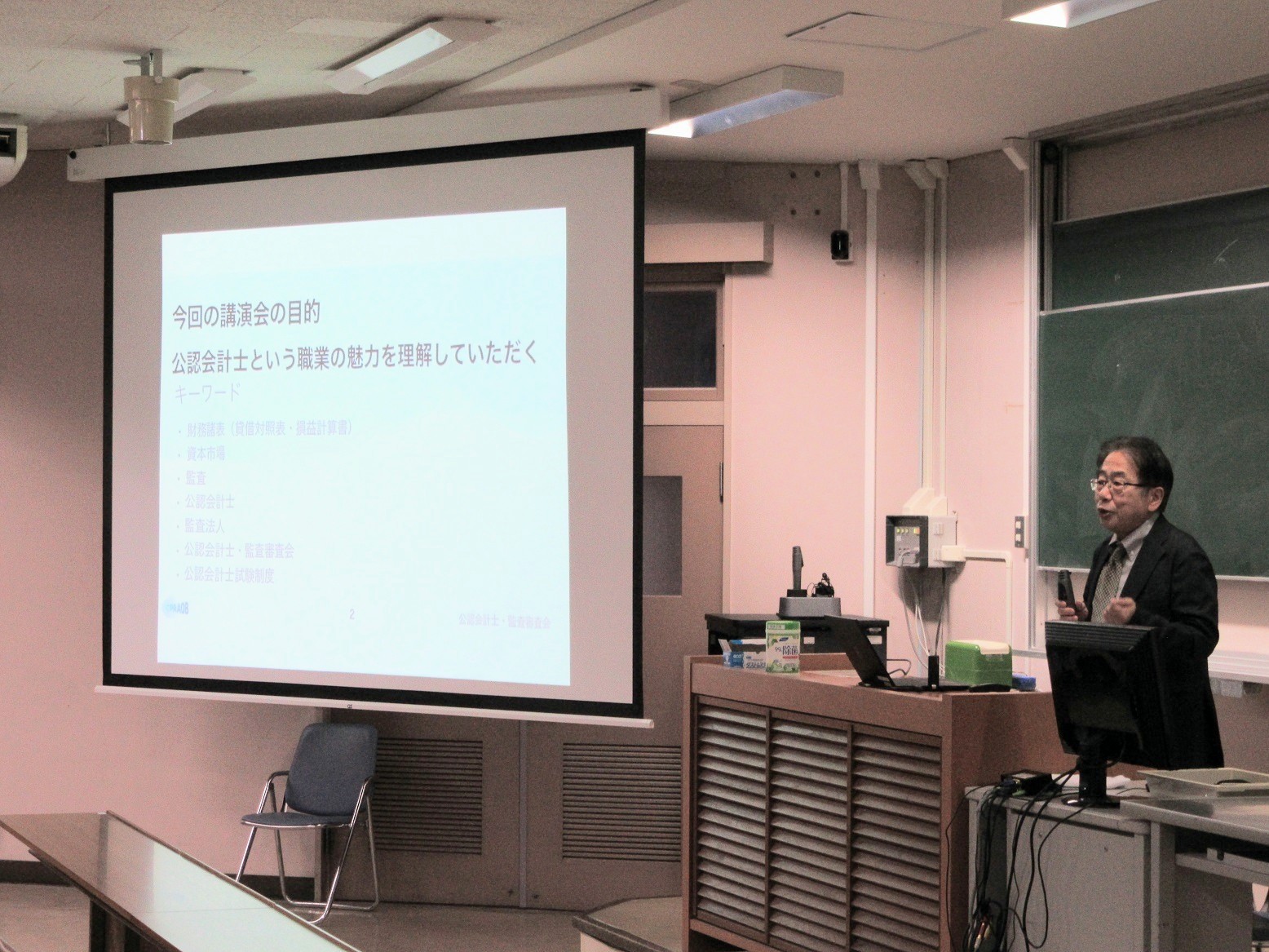 令和6年1月16日、富山大学において、青木委員が「公認会計士という職業の魅力」をテーマとして講演を行い、多数の学生の皆さまに御出席いただきました。