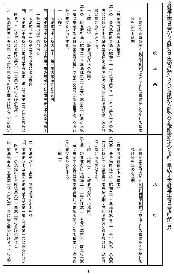「金融再生委員会から金融監督庁長官に委任される権限から除かれる権限等を定める規則」の一部改正