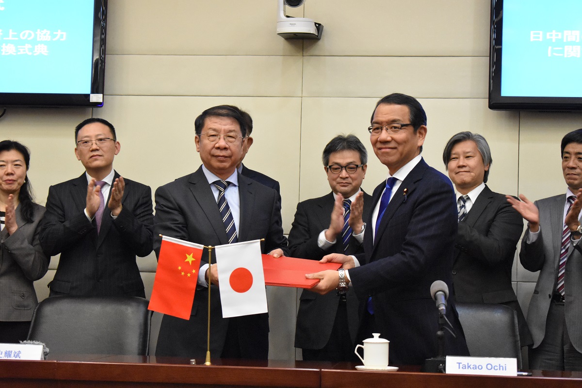 1.本日、北京において、越智隆雄内閣府副大臣と史耀斌中国財政部副部長が会談を行い、日中間の監査監督上の協力に関する書簡の交換を行いました。