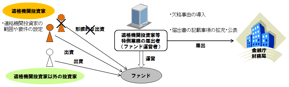 - ○平成27年5月27日、適格機関投資家等特例業務を行う業者に関する金融商品取引法の一部を改正する法律(「平成27年改正金商法」)が成立し、同年6月3日に公布されました。 - なお、本件については、証券取引法等の一部を改正する法律(平成18 年法律第65 号)附則第48 条第1項に規定する業務を行う業者(特例投資運用業務)にも適用されます。